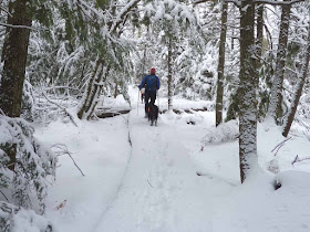 Low enough snow to drive in, at least with the dog truck. Nonetheless, it was rough going. |